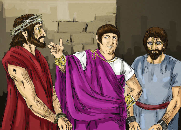 | Barabbas or Jesus The crowd was given the choice of who would be executed, Jesus or Barabbas. | > |