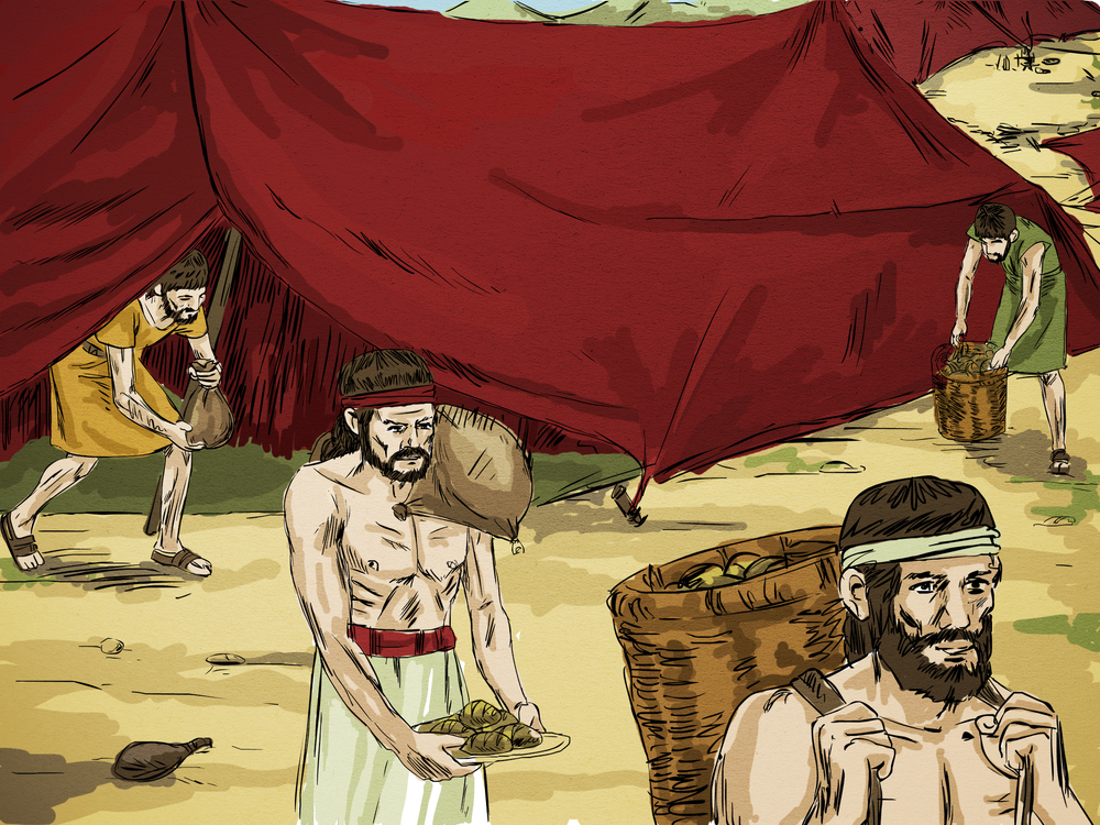 | Soon many people were coming and taking as much food as they could carry. |