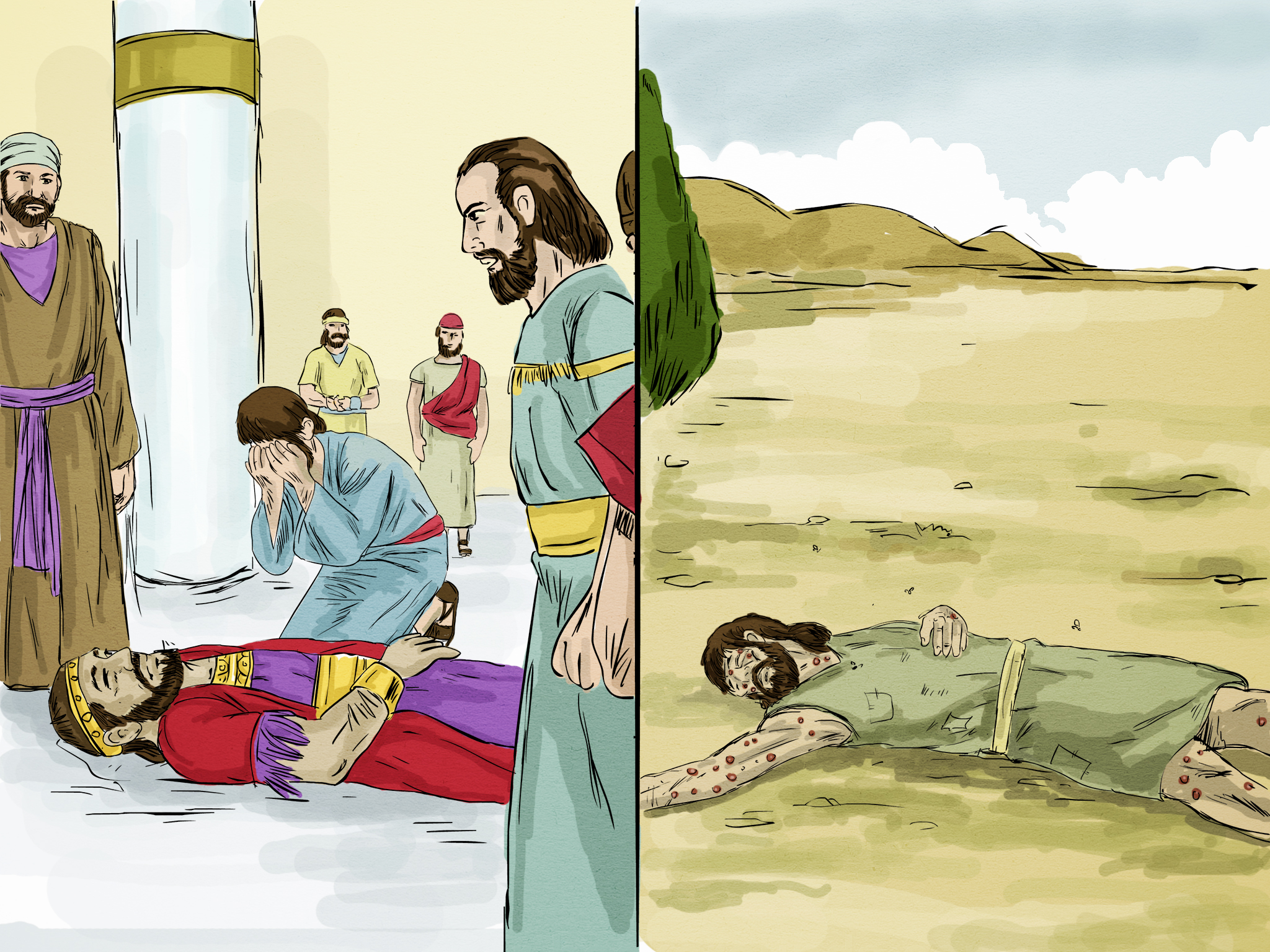 A certain beggar, named Lazarus, was laid at his gate, full of sores, 21 and desiring to be fed with the crumbs that fell from the rich man’s table. Yes, even the dogs came and licked his sores.